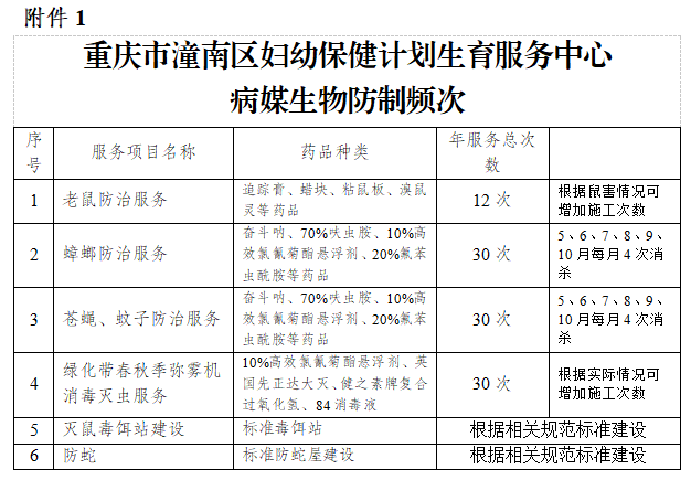重庆市潼南区妇幼保健计划生育服务中心病媒生物防制服务。